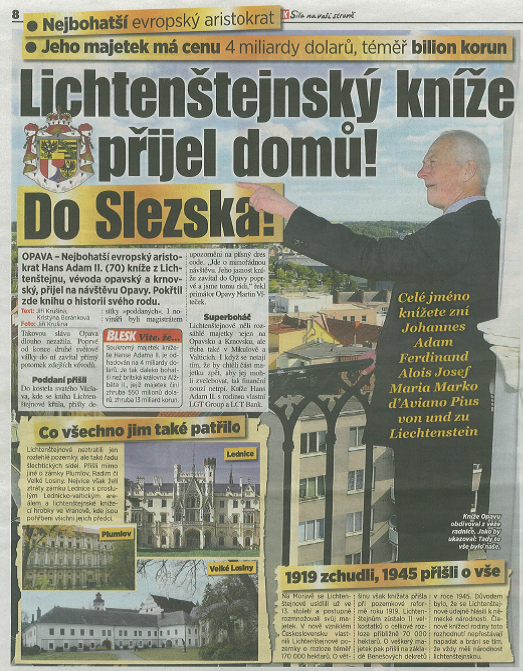 Opavský a hlučínský DENÍK 18. 5. 2015: Jeden den můžete být bohatý a druhý den o všechno přijít, exkluzivní rozhovor knížete Hanse-Adama II.