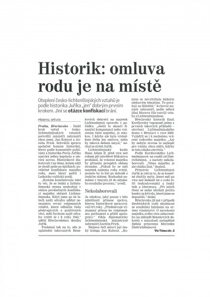 Břeclavský Deník 17. ledna 2014: Historik: omluva rodu je na místě